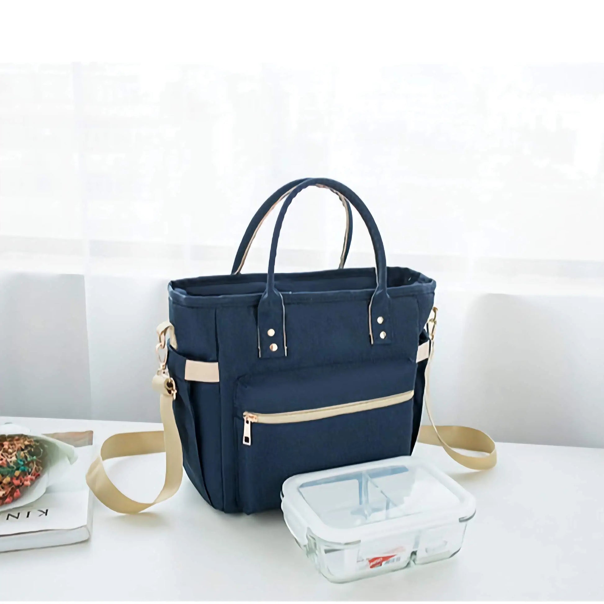 保温ランチバッグ 防水 軽量 持ち運び便利なファスナー付き オックスフォード布 多機能 お弁当バッグ